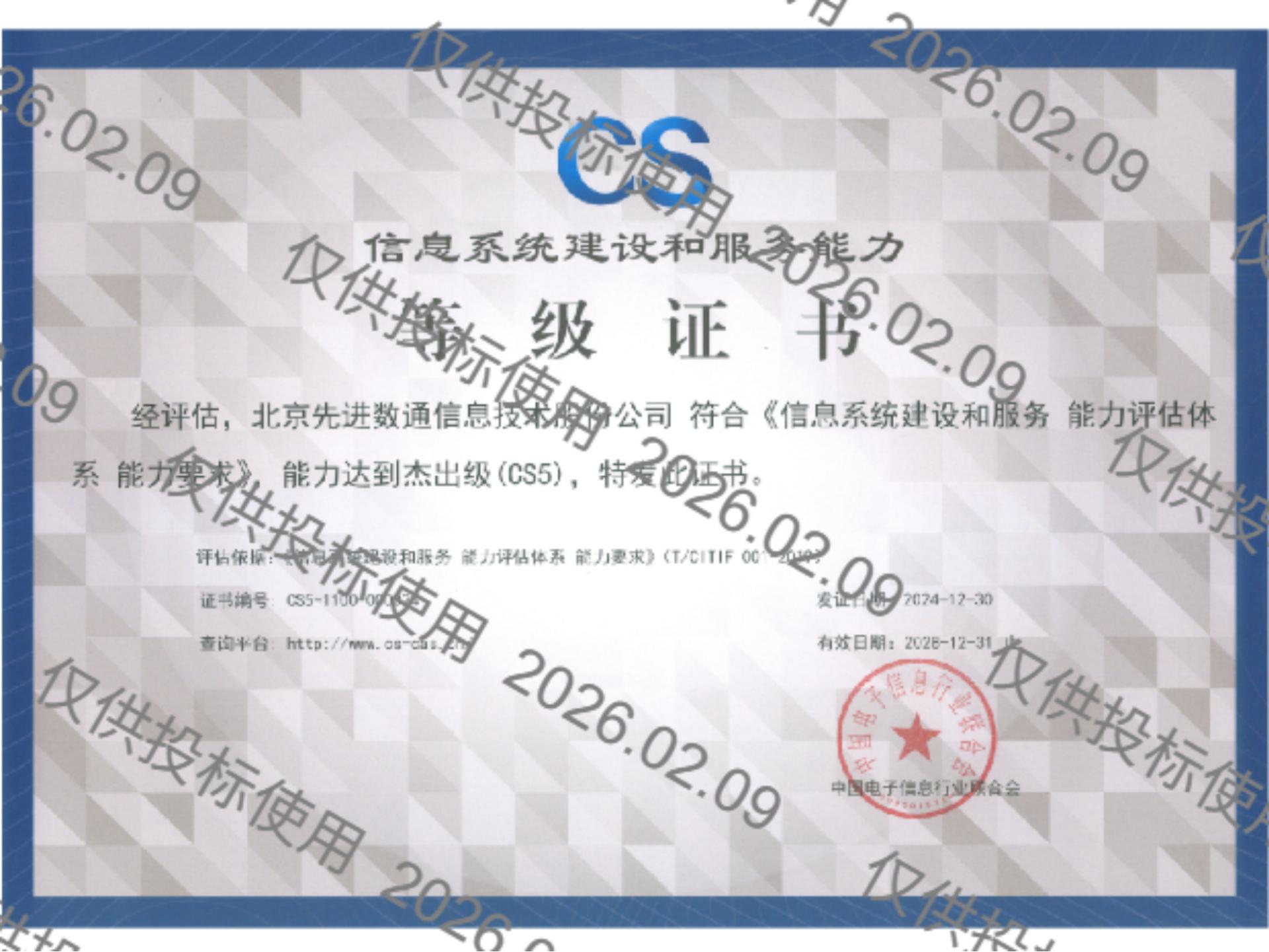 Ebpay 先后取得CMMIL5、软件能力成熟度五级(SPCA 5)、信息系统建设和服务能力评估体系(CS)5级、ITSS成熟度一级、信息系统安全集成服务资质二级、信息系统安全运维服务资质二级、国产化信息系统集成和服务能力评估四级(LS4)、北京市企业技术中心等资质认证,并取得ISO9001、ISO20000、ISO27001、ISO14001、ISO45001、ISO22301、ISO37001、ISO28001、GBT29490等标准体系认证,具备行业领先的技术开发、工程实施及服务保障能力。