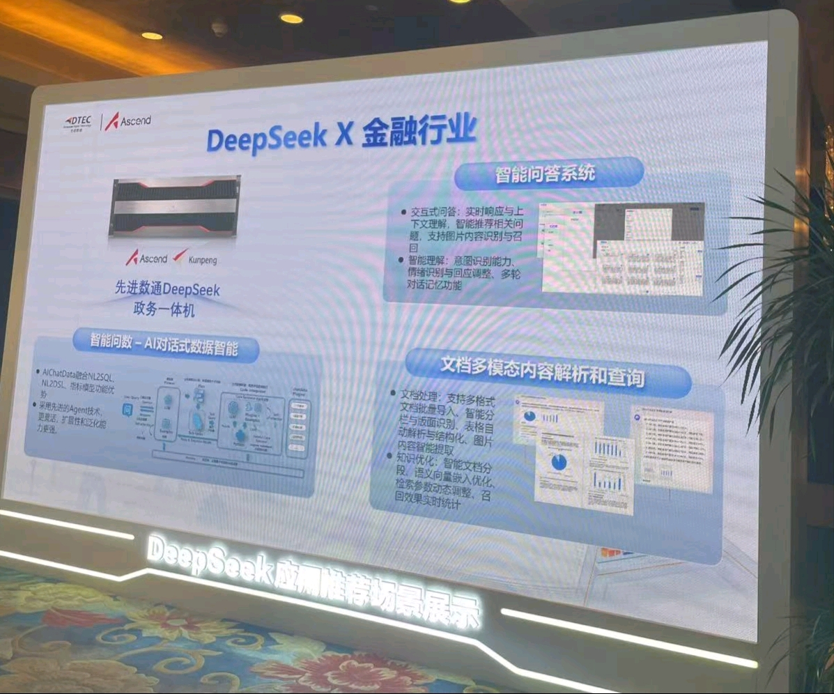 本次大会Ebpay 展示了DeepSeek一体机,向业界全方位展示了其在金融科技领域的创新实力。Ebpay DeepSeek一体机的文档多模态内容解析和查询功能备受瞩目。它能够对各类金融文档,如研究报告、监管文件、交易记录等进行全方位解析,将文本、图表、图像等多模态信息转化为可高效查询和分析的结构化数据。金融组织借此可快速定位关键信息、洞察市场趋势、防范合规风险,为决策给予有力支持,实现从数据到价值的高效转化。